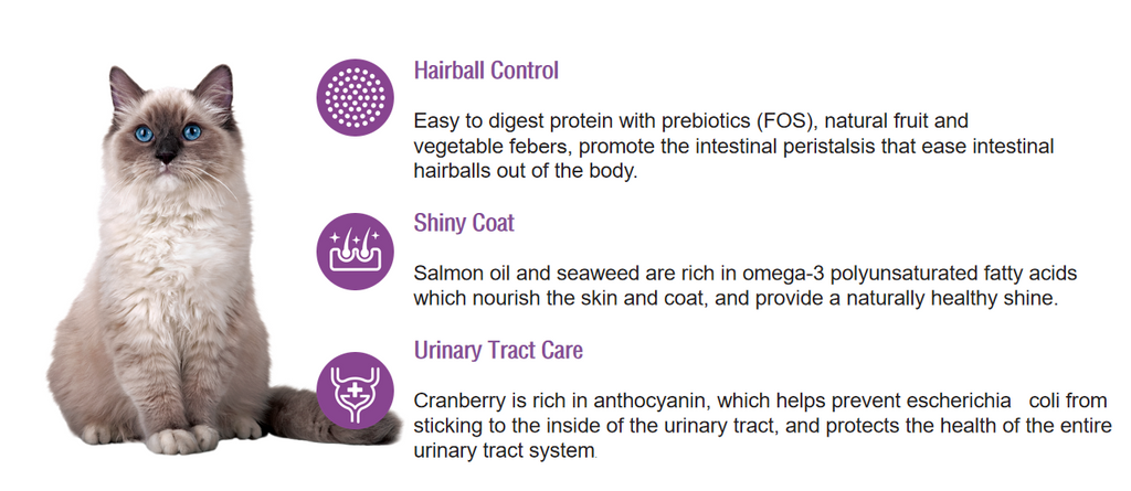 Focus sur : contrôle des boules de poils / pelage brillant / soin des voies urinaires