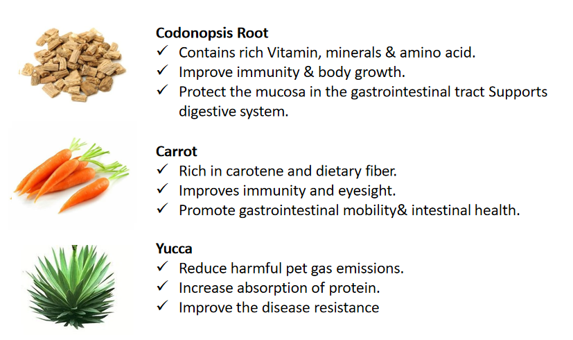 🌱 Notre produit est basé sur une formule naturelle à base de plantes, présentant les bienfaits nourrissants pour la peau des algues, les effets stimulants du système immunitaire et gastro-intestinaux de la racine de codonopsis, l'amélioration de l'immunité et de la vision des carottes, et l'aide à l'absorption des gaz et des protéines fournie par l'eucalyptus. . Cette formule naturelle à base de plantes offre à votre animal une nutrition équilibrée et complète, permettant à votre chat adulte de vivre une vie saine et énergique ! 🌟